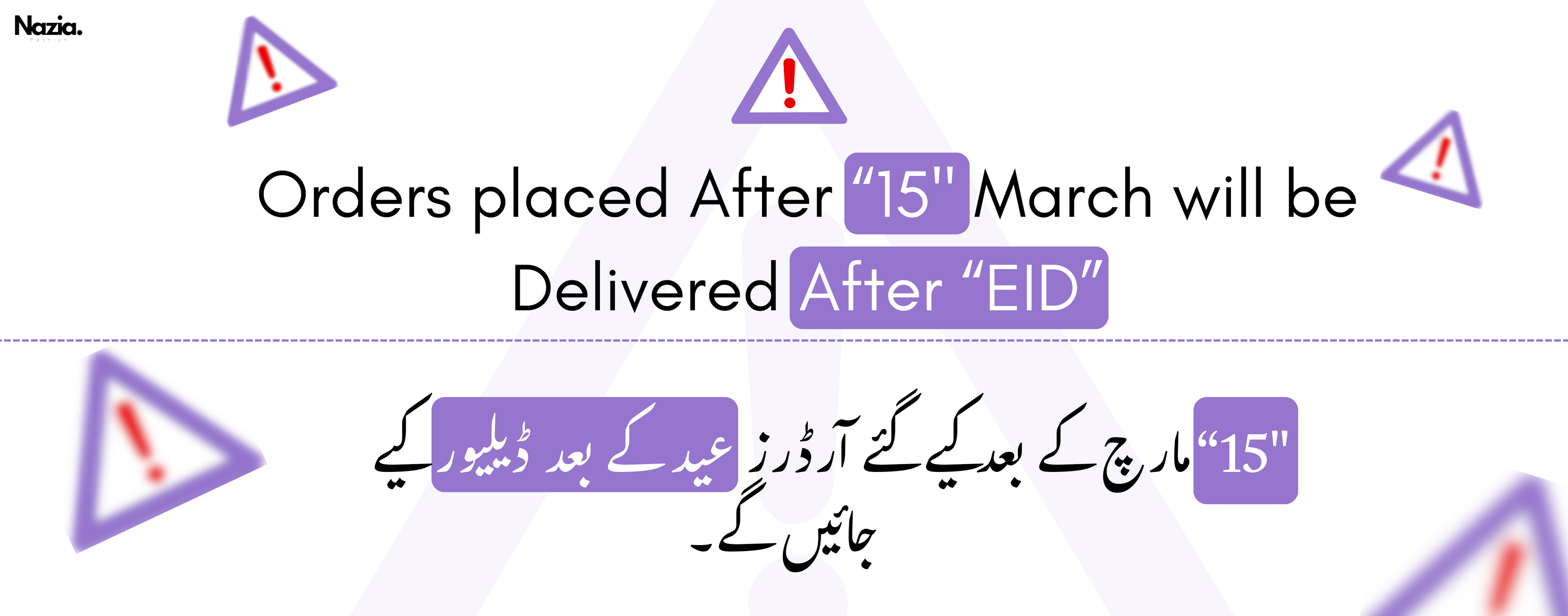 Nazia Fashion wants to make your shopping simple and enjoyable! Delivery all over Pakistan costs just Rs. 249. But the good news is—if you shop for Rs. 4,999 or more, you’ll get free delivery!